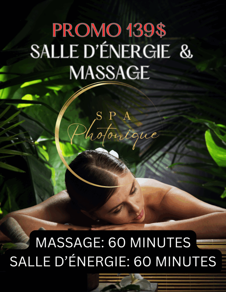 Au Spa Photonique, nous proposons une offre unique : des massages qui intègrent les bienfaits des ondes scalaires. Nos massothérapeutes expérimentés créent des soins personnalisés, où chaque séance combine détente et énergie revitalisante. Vous profitez ainsi d’un massage encore plus apaisant pour le corps et l’esprit.